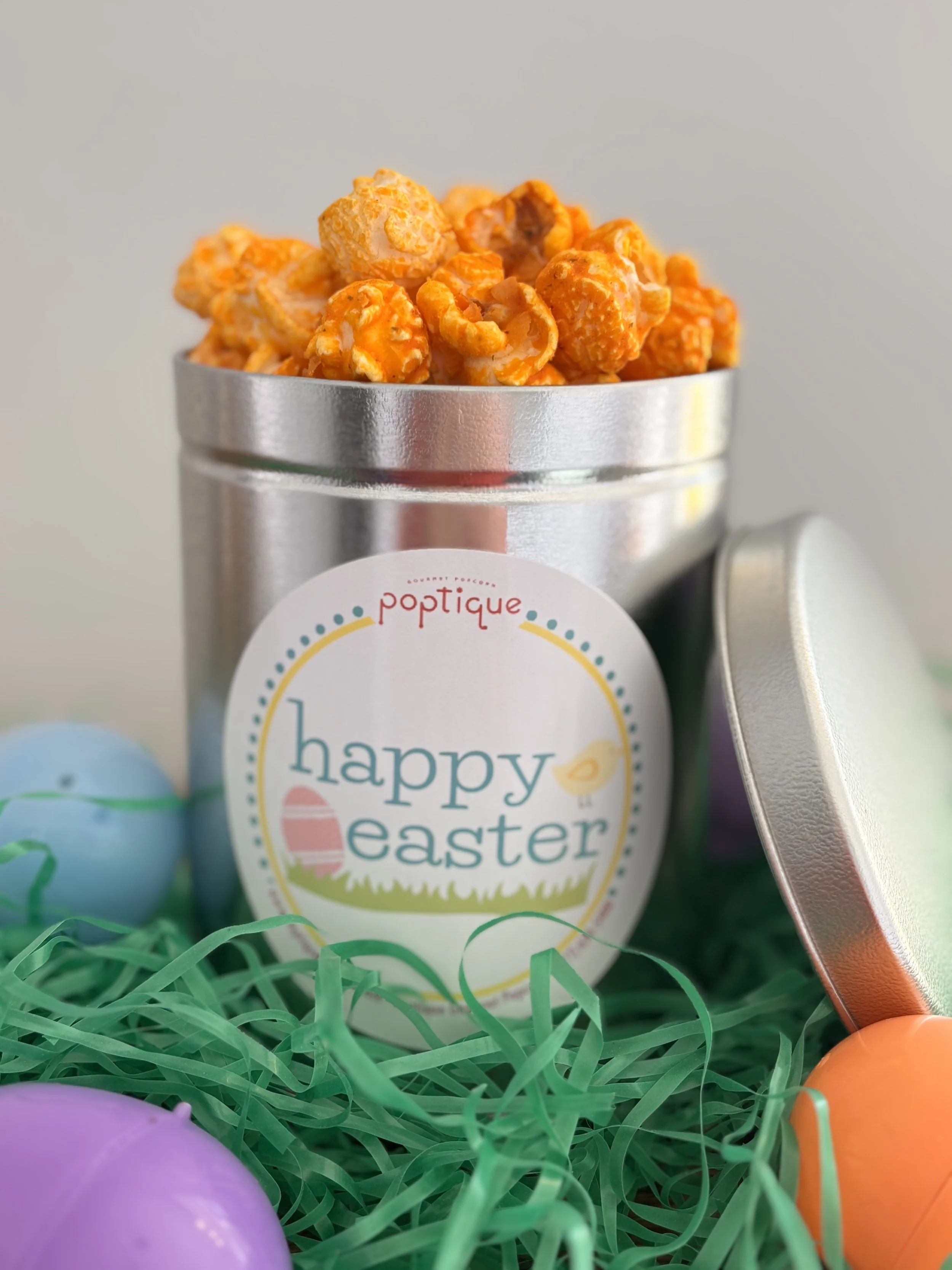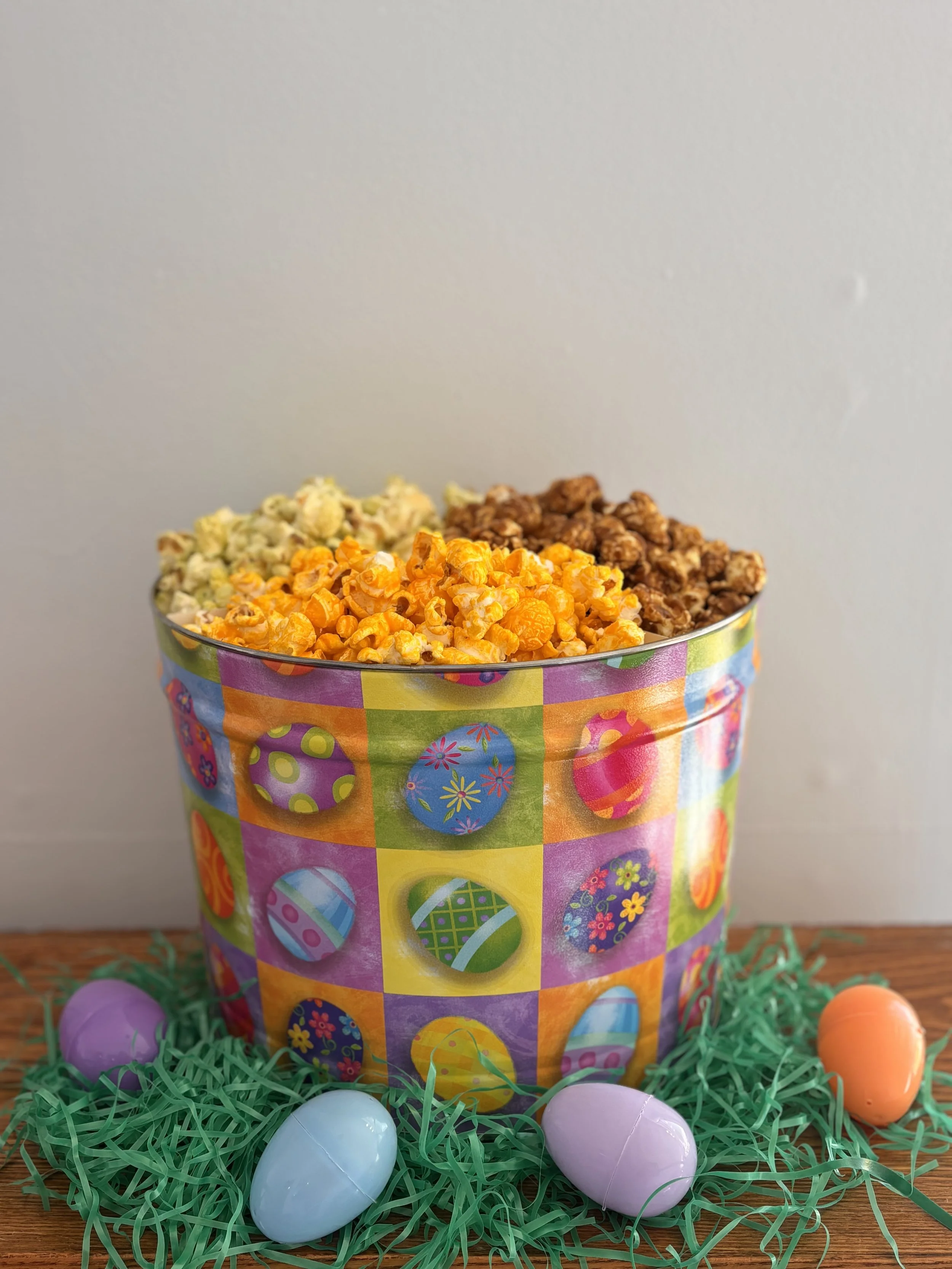 We have a very limited supply of Painted Easter and 6.5 Gallon Tins. Call for details and to order. 260 244-3745Choose from one, two or three flavors of fresh made Poptique Gourmet Popcorn.