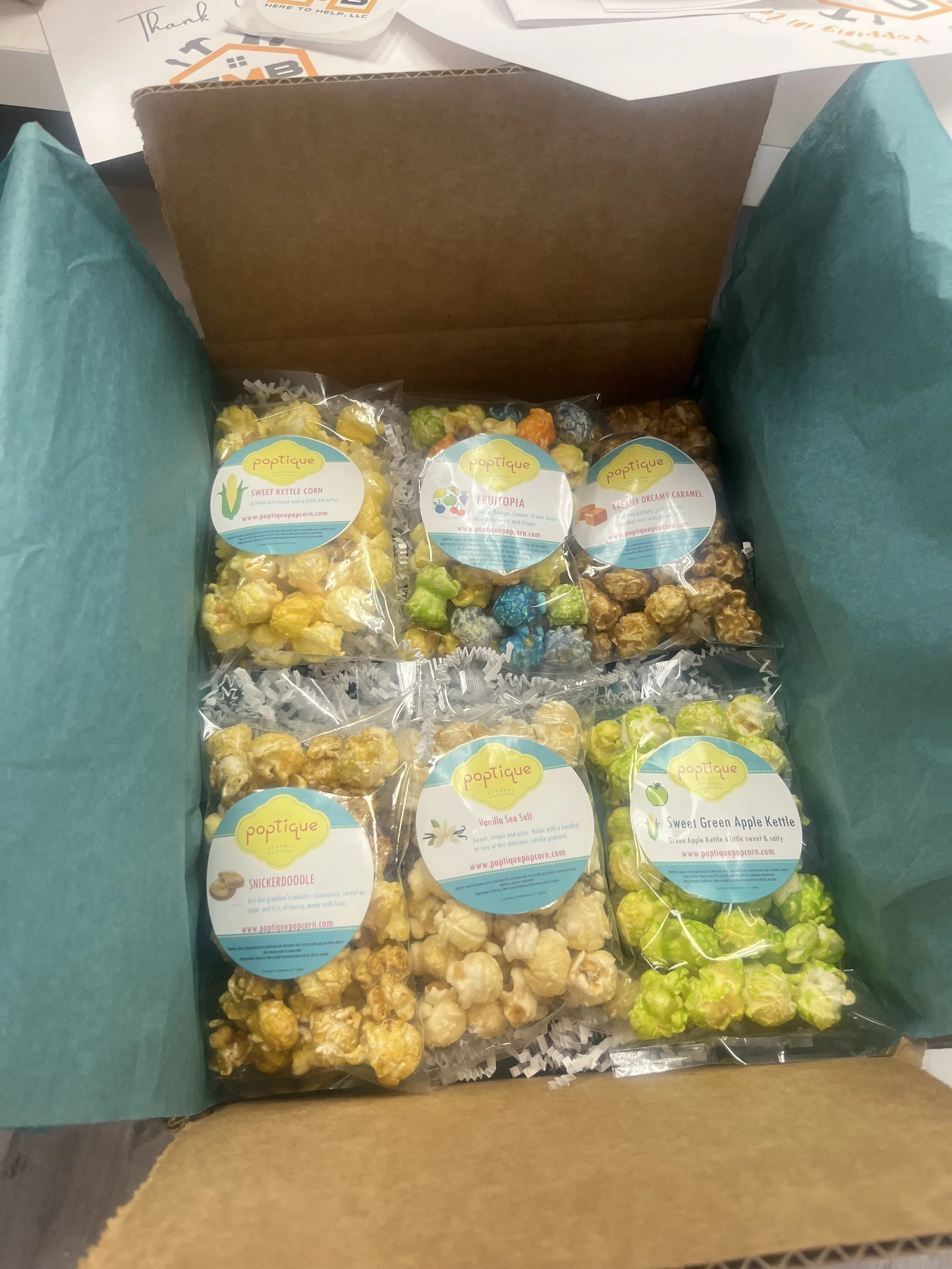 Santa’s NICE Sampler….Perfect for the “nice” friends and family in your life. Includes three snack bags of Poptique’s delicious holiday flavors: Apple Cinnamon, Christmas Cookie and Peppermint Bark. Presented in a beautiful green foil box and wrapped with a gold stretch ribbon and bow with a “Nice” gift tag.